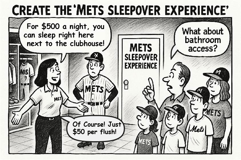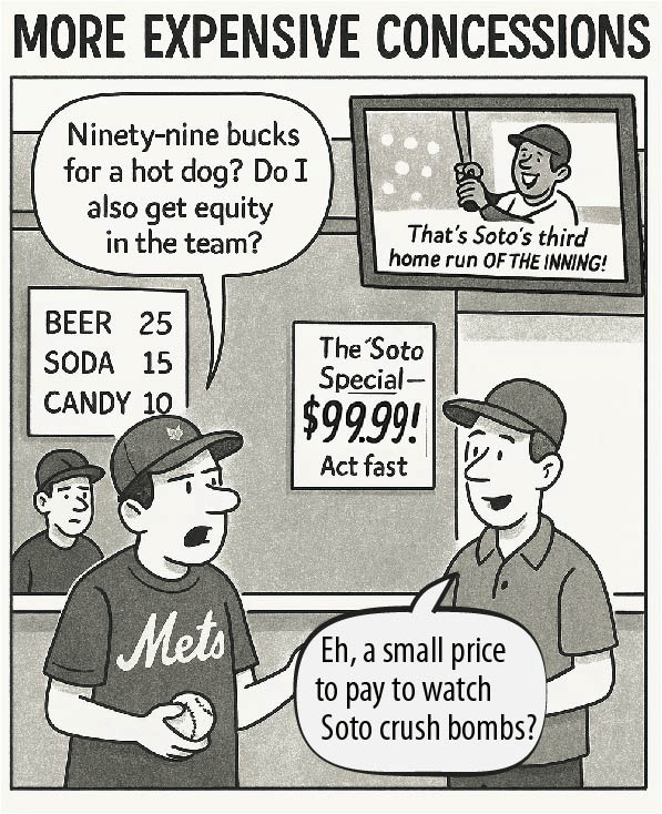What do you do when your superstar needs a suitcase the size of Queens to carry his contract? You brainstorm. Then you immediately regret it. Here are six gloriously impractical ideas, lovingly inked and definitely not cleared by Accounting, for Steve Choen and the Mets to pay for Juan Soto's Mets contract.